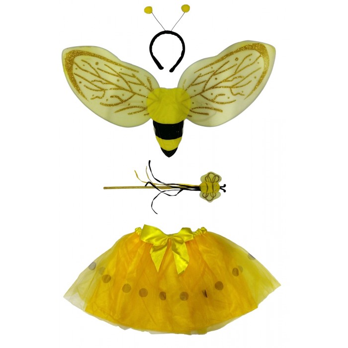 Комплект Пчела се състои от крила, поличка, диадема с антенки и пръчица. Подходящ аксесоар за парти, карнавал, училищни празненства.