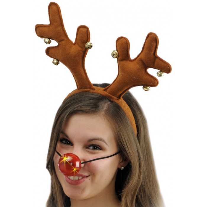 Комплект Елен - включва диадема с рога и звънчета, светещ червен нос. Подходящ аксесоар за Коледа, Нова Година, парти, карнавал, училищни празненства и всякакви забавления.