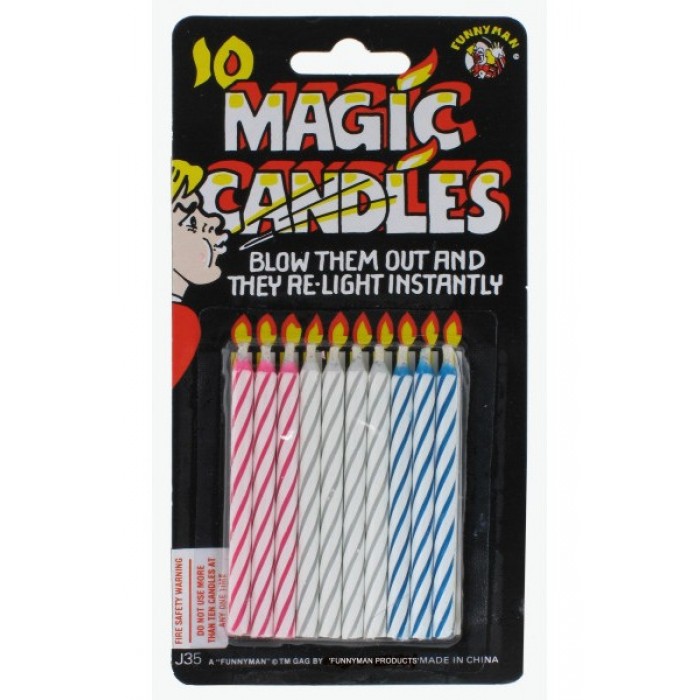 Негаснещи свещи, класика в жанра. Практичен съвет - ако юбилярът е на доста години можете да смесите негаснещите свещи с обикновени, изглеждат идентични. Неподходящи за лица под 16 години. Произведено в Англия.