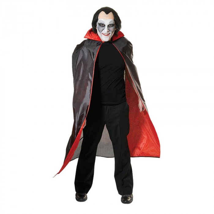 Наметало Дракула двулицево, черно - червено е изработено от полиестер с дължина 1.20м. Подходящо за Хелоуин, парти, карнавал, училищни празненства и всякакви забавления.