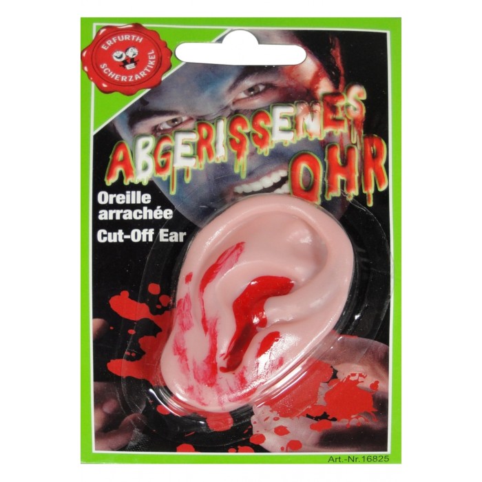 Отрязаното ухо е изработено от гума. Подходящо e за шеги, закачки и правене на номера. Неподходящ за деца под 3 години.