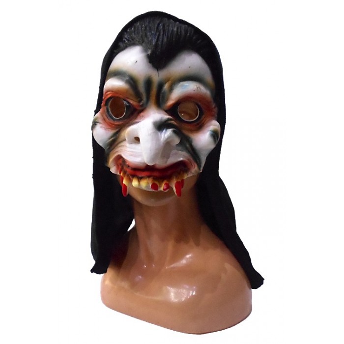 Маска Дракула половин лице, латексова, с черна качулка. Подходяща за Хелоуин, парти, карнавал, училищни празненства и всякакви забави.
