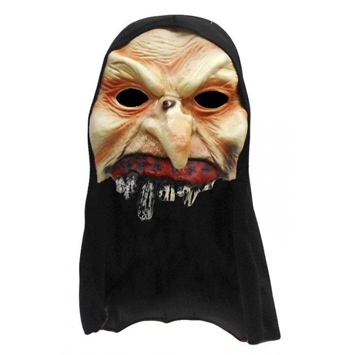 Маска Вещица половин лице, латексова с черна качулка. Подходяща за Хелоуин, парти, карнавал, училищни празненства и всякакви забави.