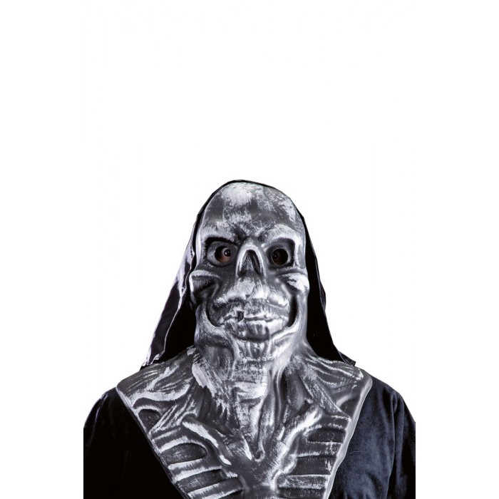 Маска Череп с нагръдник и качулка е изработена от мек материал и плат. Подходящ аксесоар за Хелоуин, парти, карнавал, училищни празненства, балове и всякакви забавления.