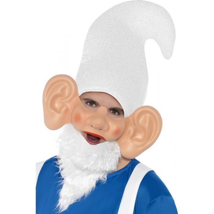 Маска Гном (джудже) с големи уши покрива горната половина на устата и носа. Подходяща е за Хелоуин, Коледа, Нова Година, маскарад, училищни празненства, парти, бал с маски и забави.
