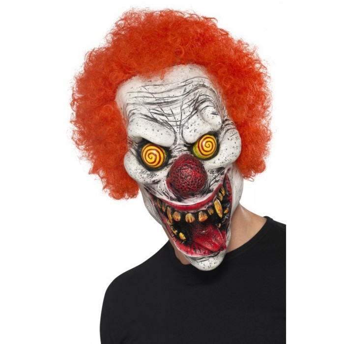 Маска Клоун с хипно очи и червена коса е изработена от висококачествен латекс. Подходяща за Хелоуин, парти, карнавал, забавления.