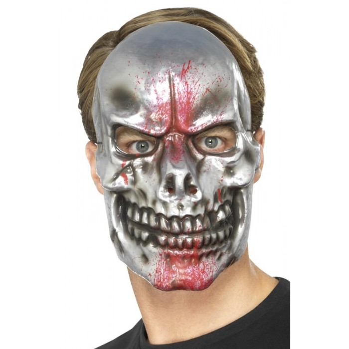 Маска Череп, сребърен с кръв е изработена от пластмаса. Подходяща за Хелоуин, парти, карнавал, забавления.