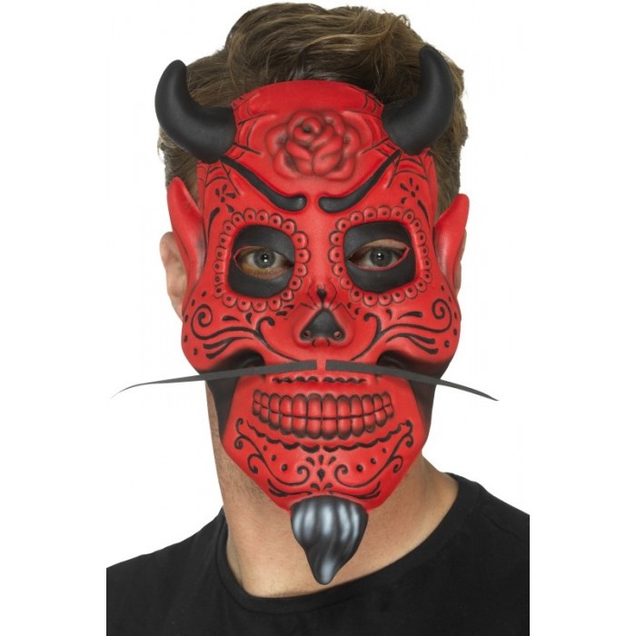Маска Дявол Day Of The Dead е изработена от мек материал - EVA. Подходяща за Хелоуин, парти, карнавал, забавления.