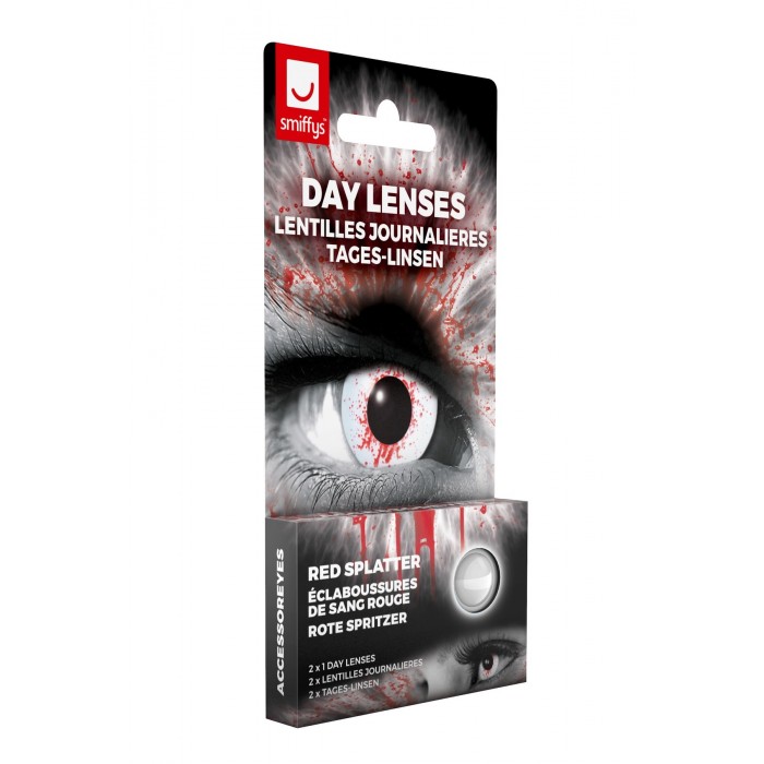 Лещи за очи - бели с кървави червени пръски за еднодневна употреба.