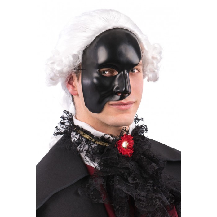 Маска-домино Фантом, половин лице, изработена от пластмаса. Предлага се в два цвята: сребърна и черна. Подходяща за Хелоуин, карнавал, маскарад, парти, бал с маски, училищни празненства и забави.
