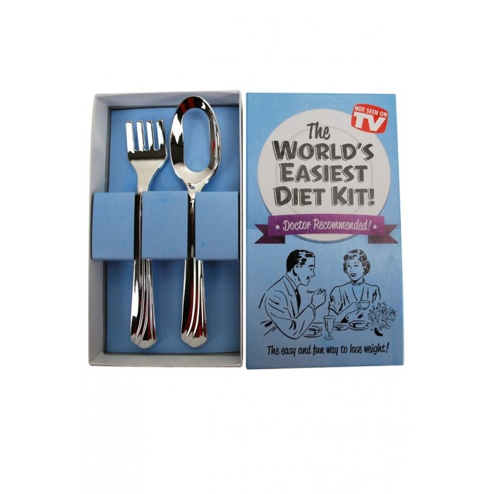 Комплектът за отслабване включва лъжица с дупка и вилица с къси зъби. Ако още не сте успели да влезете във форма след празниците, или познавате някой, който непрекъснато прилага диета след диета, можете да направите революционен подарък, който да реши проблема веднъж завинаги. Подходящ и оригинален подарък за рожден ден, имен ден, Свети Валентин, Коледа, Нова година.