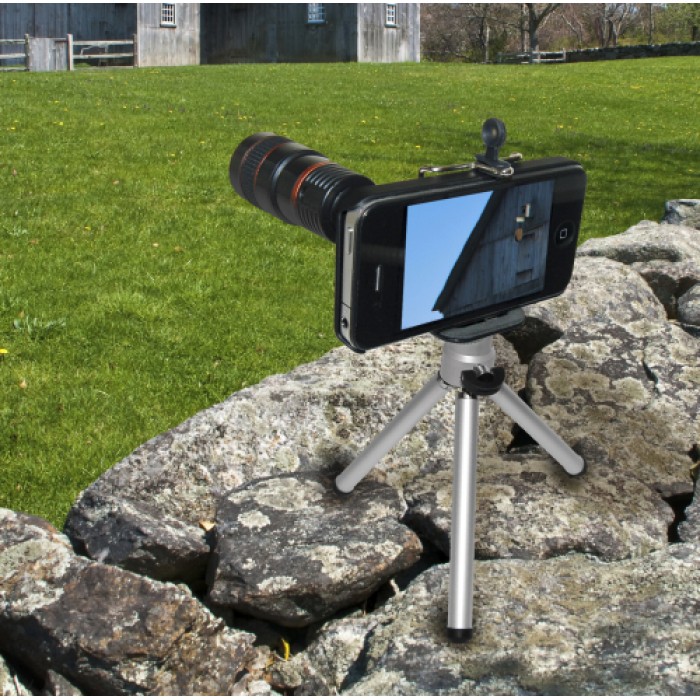 Add-on zoom lens that fits virtually all mobile phone cameras. Mobile phone photography is improving all the time and now even rivals or exceeds the quality of small digital cameras but one thing that mobile phone cameras can fall down on is the level of optical zoom available. This clever add-on solves this problem in a simple way and gives your mobile phone cam an 8x optical zoom ability. Simply attach the adjustable universal bracket to your mobile phone and slot in the lens whenever you want to use it to take close-up pictures. Usefully the bracket also has a socket on its base so that you can attach it to a tripod or monopod stand for extra stability. Small enough to carry in your pocket this clever accessory makes your mobile phone even more functional. Please note the Eye Scope is not compatible with the iPhone 4G. It will only fit the 3G and 3GS. Specifications: 8X Objective Lens. 18mm angle of view. 18mm width. Size: 34 x 70mm.