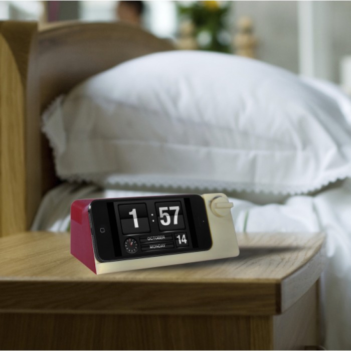 Retro-modern bedside speaker: This original design Touch Speaker uses new wireless technology - just touch your device to the speaker for instantly magnified sound! Ideal for use as a smartphone alarm clock amplifier this nostalgic speaker is compatible with most smartphones and can be USB or battery powered. To charge your phone while you listen to music or overnight simply use your devices USB charging cable to connect it to the rear of the touch speaker! -Use as a smartphone alarm clock amplifier -Compatible with most smartphones -USB or battery powered (requires 3 x AA batteries - not included) -USB charging cable included -Connect via USB to recharge your phone – compatible with most USB charging cables -Output: 2W / 4 O / 1.5 RMS x 2 speakers