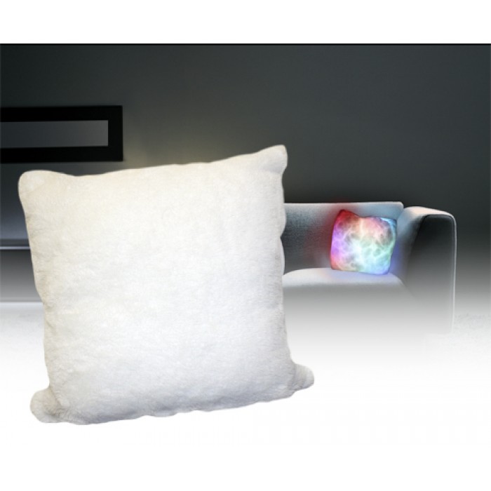 Mood lighting doesn’t come much softer than this! This light-up colour changing cushion has to be the fluffiest light source available anywhere. Made from ultra-soft plush fur an internal light source illuminates the whole cushion with a gently shifting light that shimmers between various different colours. Powered by a battery pack that sits tucked away inside a zip-up compartment low energy LEDs ensure that the Moonlight Cushion is both bright and safe. You can use this light up cushion anywhere you want some calm mood lighting or even as a reassuring nightlight for a child’s bedroom. A tap to the centre of the cushion brings it to life or switches it off so there’s no need to access the battery pack during normal use. Chilled out but still warming the soft glow of a Moonlight Cushion is the perfect way to create some illumination in any room where you want some light but not too much.