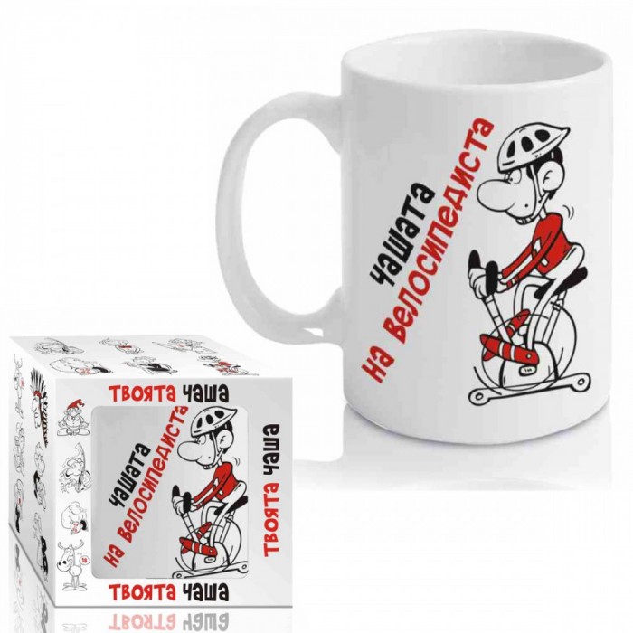 Страхотен подарък за велосипедисти с весела картинка и надпис. Подходяща за топли и студени напитки.
