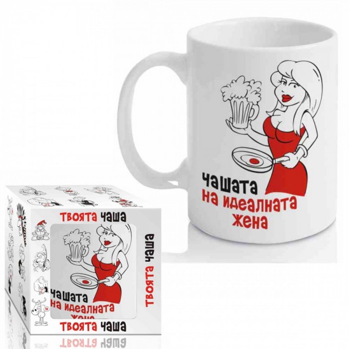 Страхотен подарък за жена със забавна картинка и надпис. Подходяща за топли и студени напитки.