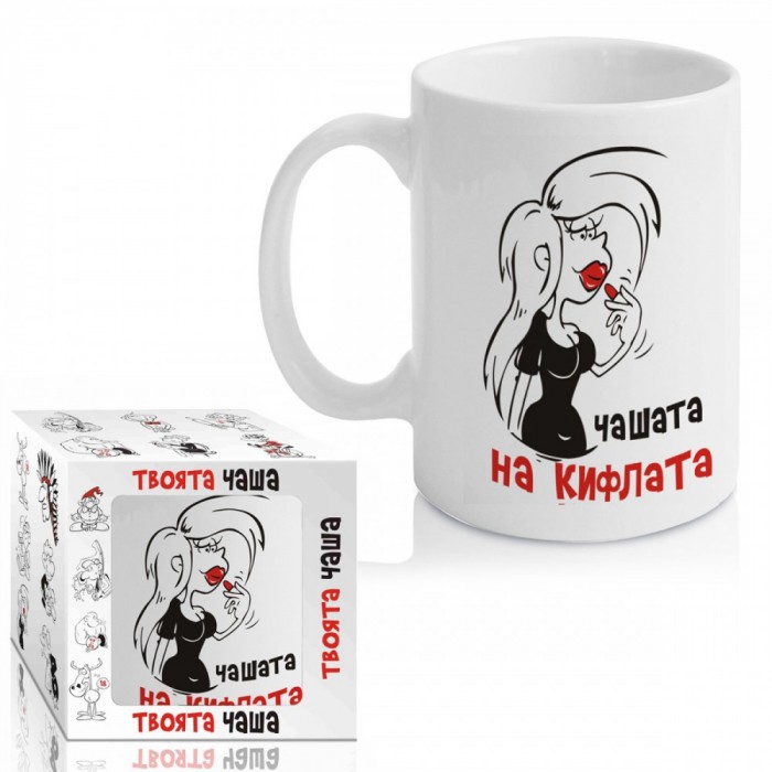 Шеговита чаша, подходяща за жени със забавна, закачлива картинка и надпис. Подходяща за топли и студени напитки.