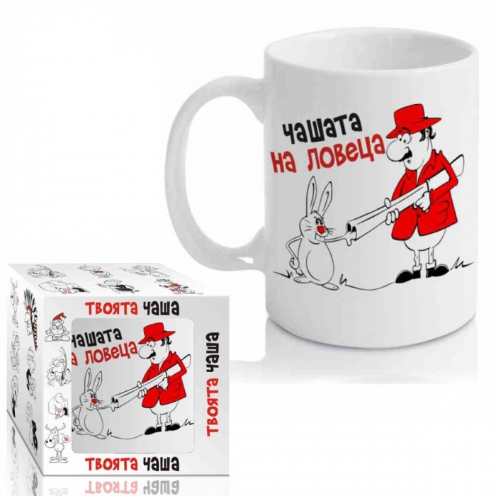 Забавна чаша с весела картинка, подходяща за ловци. Подходяща за топли и студени напитки.
