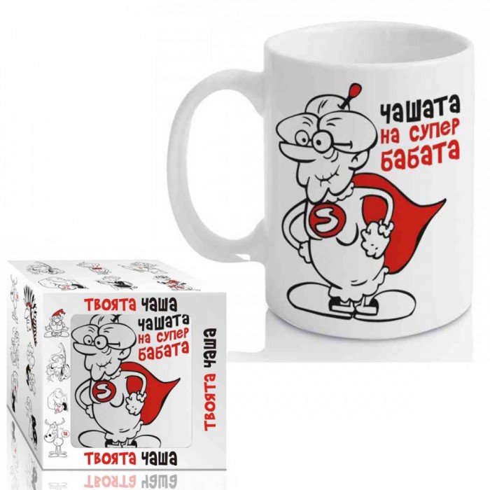 Страхотен подарък за любящи баби със забавна картинка и надпис. Подходяща за топли и студени напитки.