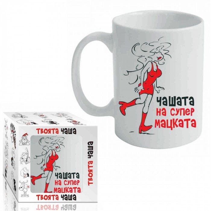 Страхотен подарък-чаша за жени със забавна картинка и надпис. Подходяща за топли и студени напитки