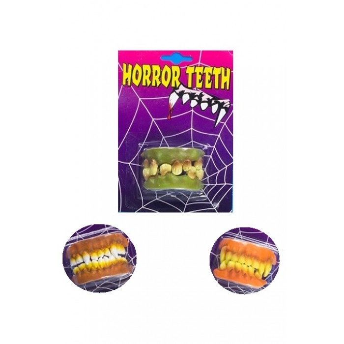 Зъби Чудовище, състоящи се от горна и долна част. Подходящи за Хелоуин, парти, карнавал, училищни празненства и всякакви забавления.Цената е за един брой.