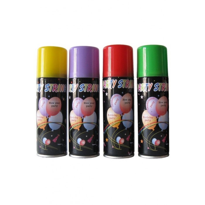 Спрей серпентина ленти в жълт, лилав, червен, зелен и тъмно зелен цвят. Подходящ за парти и карнавал.