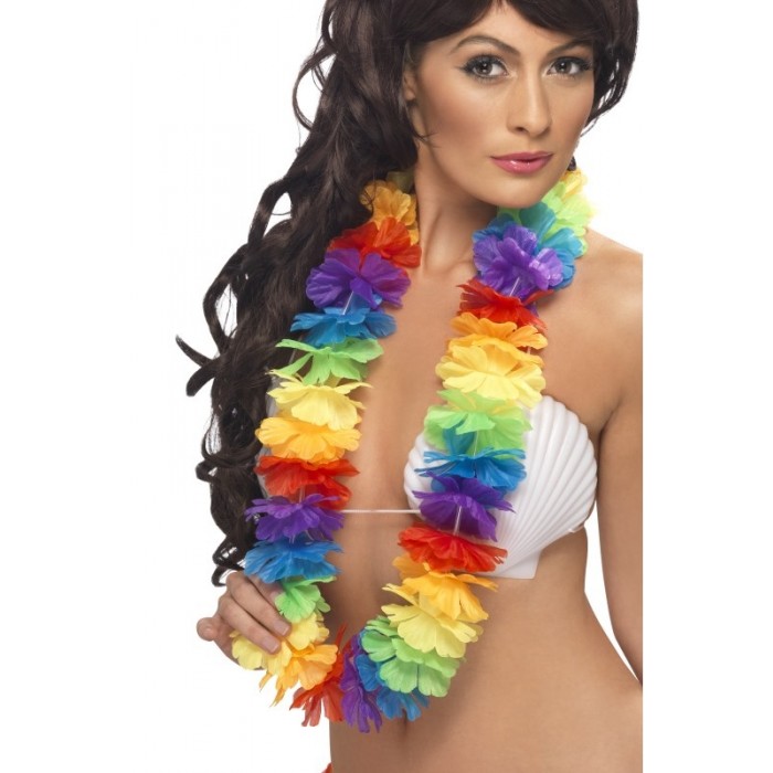 Хавайска огърлица от цветя, многоцветна. Подходящ аксесоар за парти, карнавал, рожден ден, училищни празненства, балове и всякакви забавления.