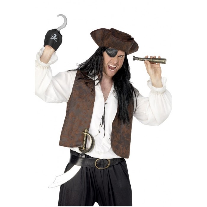 Комплект Пират се състои от превръзка за око, телескоп, ятаган и кука за ръка. Подходящ аксесоар за Хелоуин, парти, карнавал, училищни празненства и всякакви забавления.