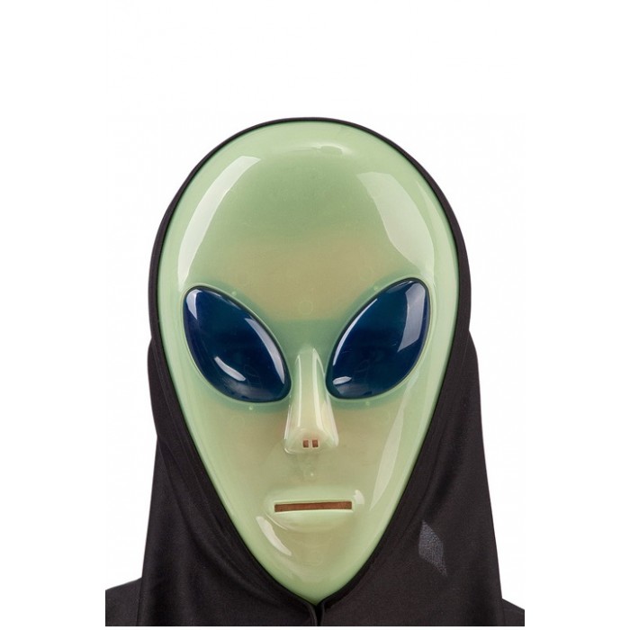 Маска Извънземно, фосфоресцираща е изработена от пвц и плат и свети в тъмното. Подходяща е за Хелоуин, маскарад, училищни празненства, парти, бал с маски и забави.