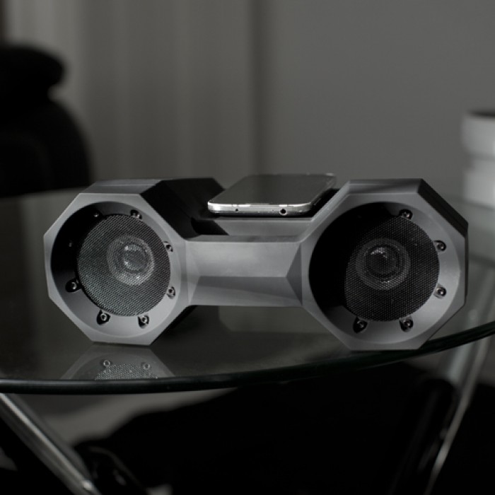 Everywhere you go take the Touch Dual Boombox with you! This lightweight USB powered speaker amplifies your favourite sounds with one touch! Boasting a speaker quality of 3W x 2 and integrated with a carry handle walk around with The Touch Dual Boombox and amp up the volume! To use place your Smartphone on top of the Boombox for big sounds! -Portable speaker with carry handle -Touch Smartphone to speaker to amplify the sound -Compatible with most Smartphone and MP3 players with external speakers. -USB powered- one charge lasts 4-5 hours (micro USB cable included) -Optional 3.5mm jack input (cable not included) -Output 3Wx 2( RMS)