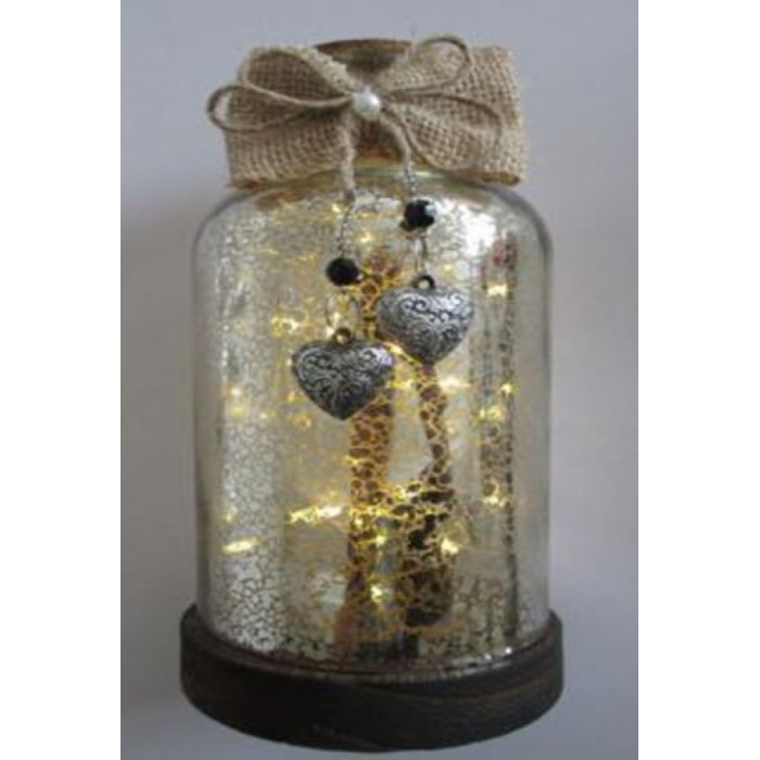 Стъклена бутилка декор с 21 LED лампички, напукано, злато, 11х21 см