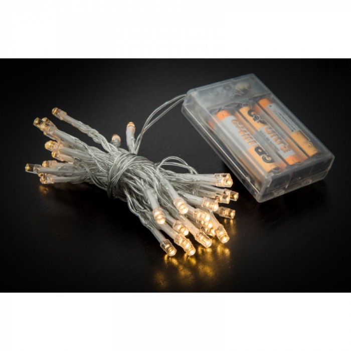 Коледни лампички с батерии, 40 LED, прозрачен кабел, топло-бели, 2М