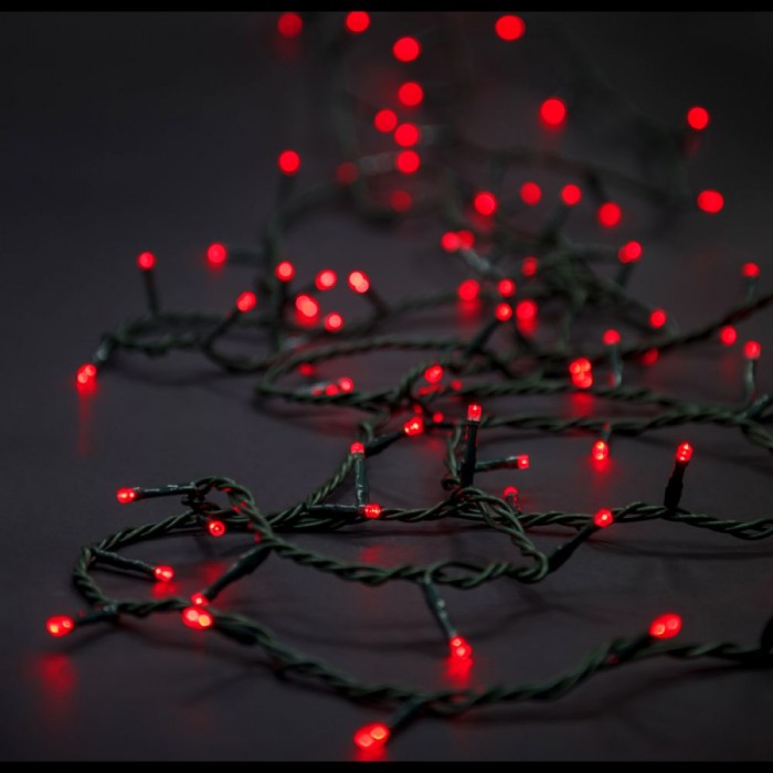 Коледни лампички, 100 лед, 8 програми, 6,8 метра, зелено/червено