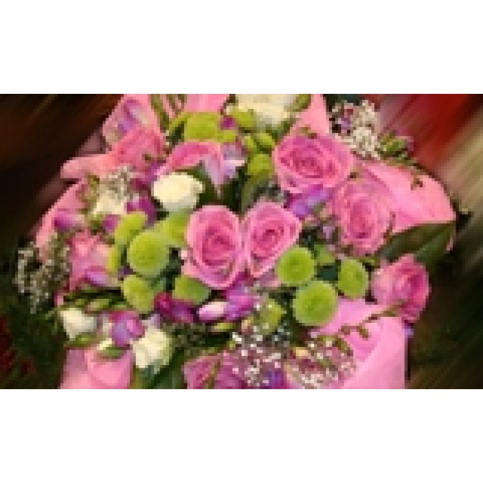 Поднесете свежа, ароматна композиция от рози, фрезии и хризантеми. Виж още предложенията ни за сладки изкушения- белгийски шоколад, бутикови бонбони и букети от балони с хелий.