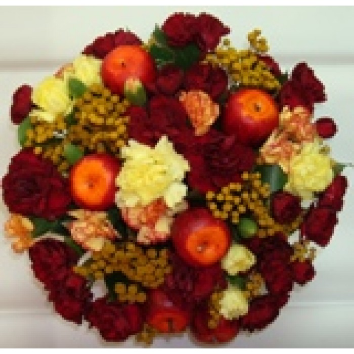 Аранжировка от живи цветя.Подходяща е за украса на маса.Растенията са с къси дръжки.