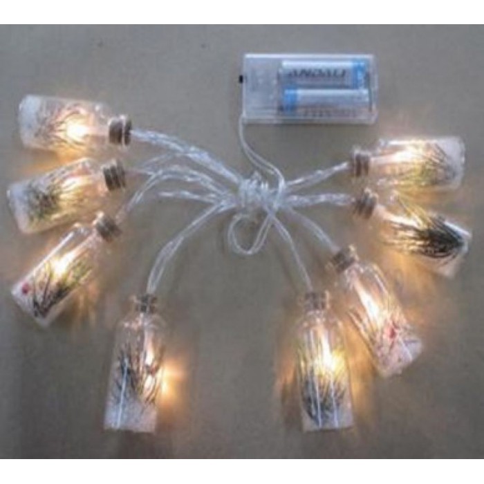 Гирлянд LED светлина, батерии, 8 бр. стъклени шишета с вграден декор, 3х6 см