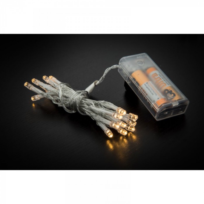 Коледни лампички с батерии, 20 LED, прозрачен кабел, топло-бели, 1М
