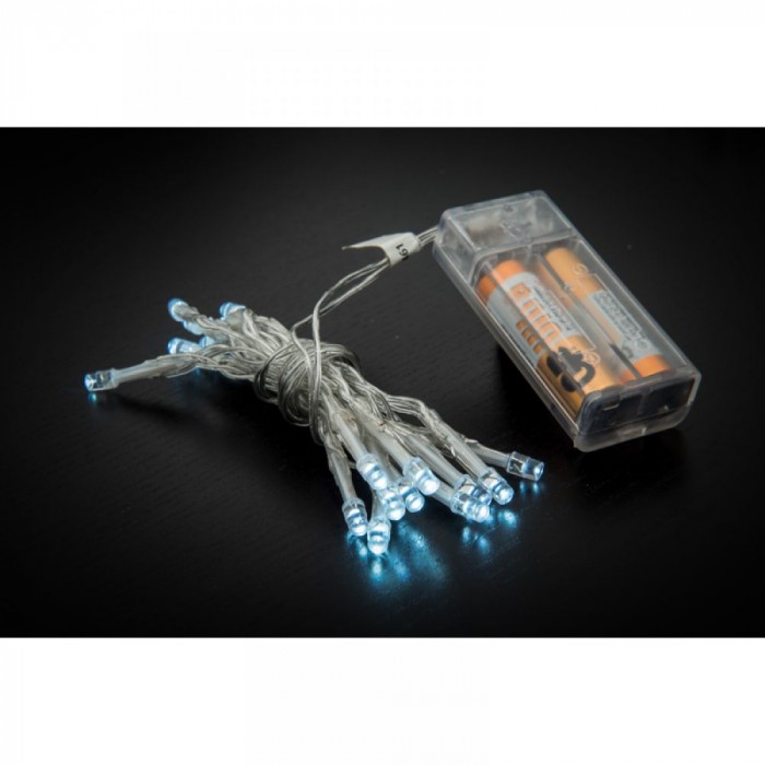 Коледни лампички с батерии, 20 LED, прозрачен кабел, студено-бели, 1М
