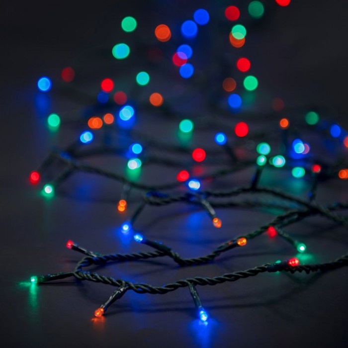 Коледни лампички, 100 LED, зелен кабел, мултиколор, 8 програми, 6.8 М