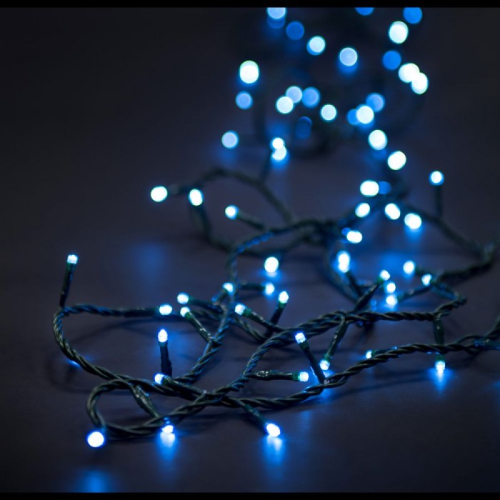 Коледни лампички, 200 LED, зелен кабел, студено-бели, 8 програми, 10 М