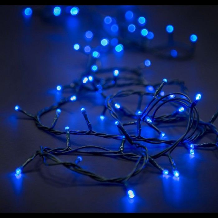 Коледни лампички, 100 LED, зелен кабел, сини, с конектор, 6.8 М