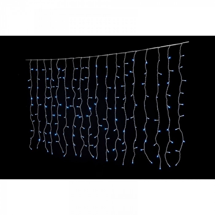 Завеса, 200 LED, прозрачен кабел, студено-бели, 2Х1 М
