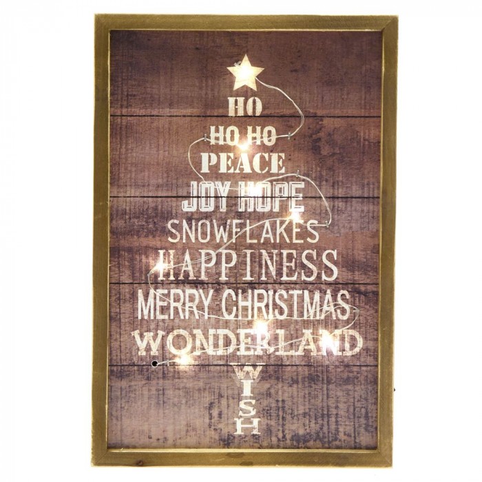 Дървена картина с LED осветление, елха , батерии, 20х30 см
