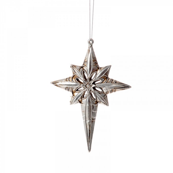 Висящ пластик орнамент снежинка2 сребро 11Х1Х15CM